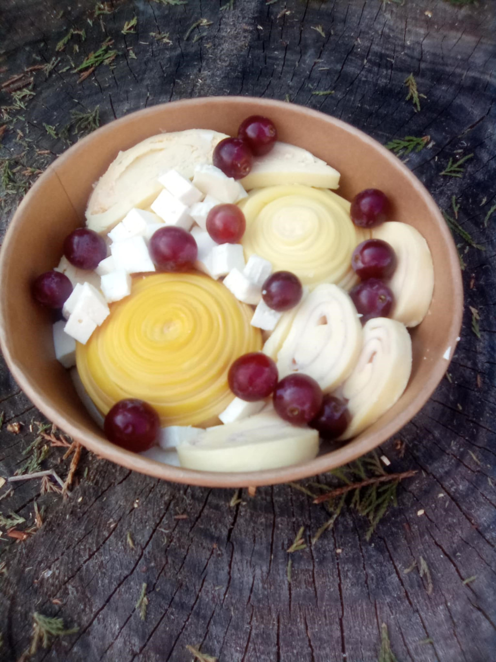 A sajttál 1,5 kg sajtot tartalmaz. Összetétele változó, tartalmaz ízesített gomolyasajtokat, natúr és füstölt sajtot, vötösborban érlelt sajtot.Tökéletes választás ünnepi alkalomra, buliba, kerti partihoz vagy csak úgy mert finom.