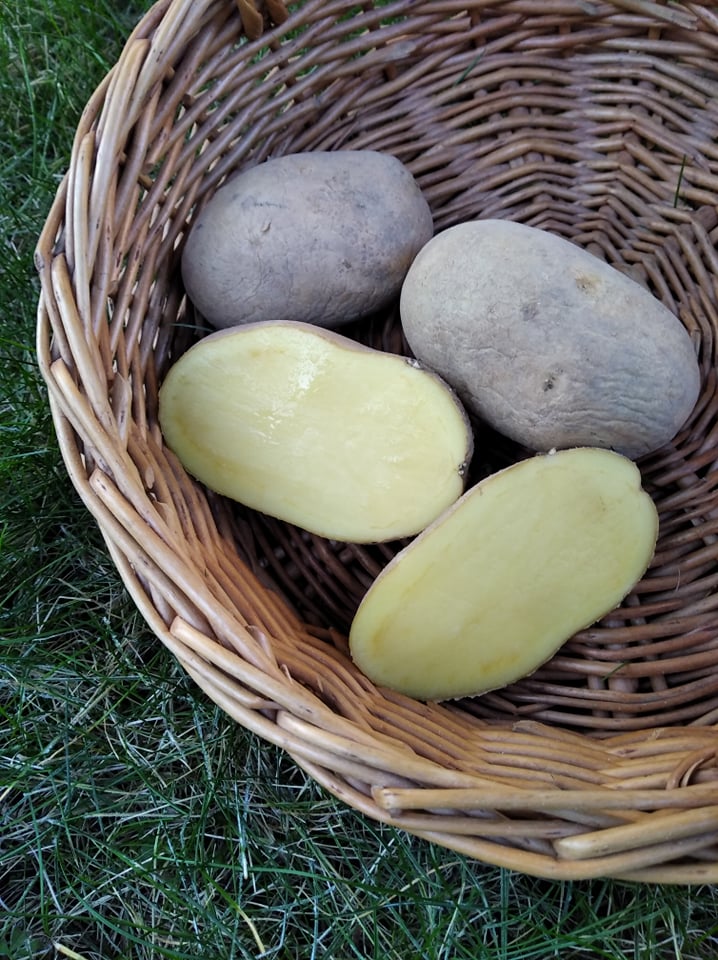 Fehér húsú fehér héjú édesburgonya, vegyszermentesen termelve. Íze kevésbé intenzív, hasonló a hagyományos burgonyához.