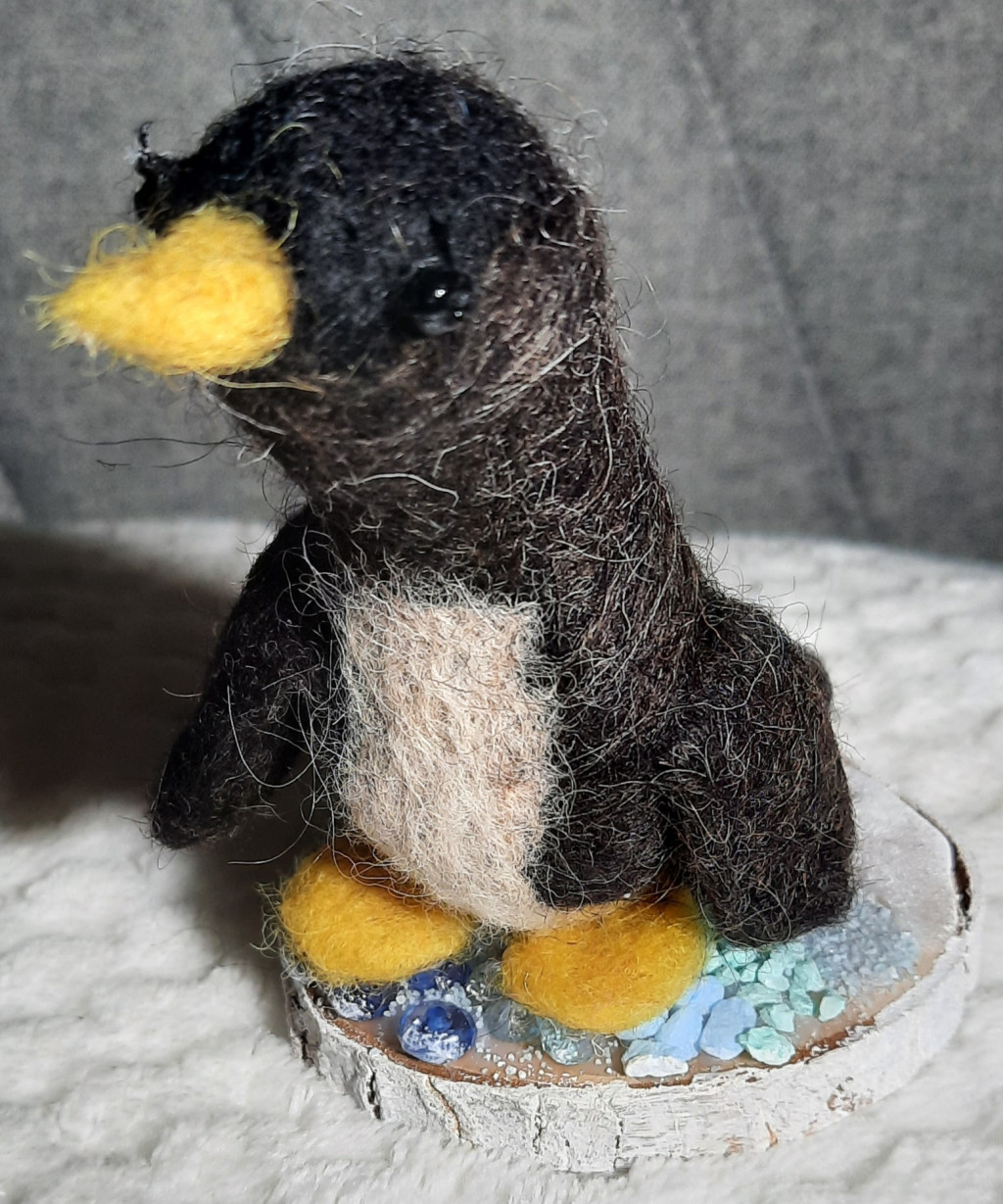 Szalma alap szőrmeborítással, kerámia manó figurával és lézervágott felirattal