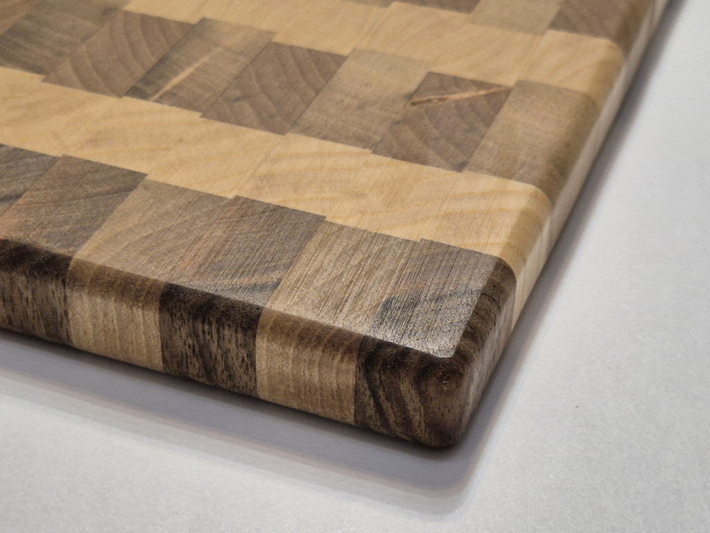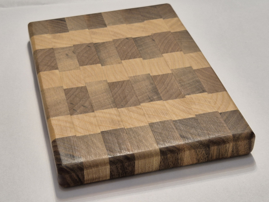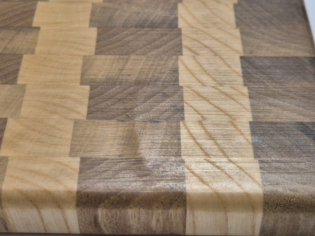 "S" -es méretű hagyományos vágódeszka háztartásba konyhába 22,5 x 16,5 cm Dió és kőrisfa, növényi olajokkal felületkezelve (Élelmiszeripari minősítés)