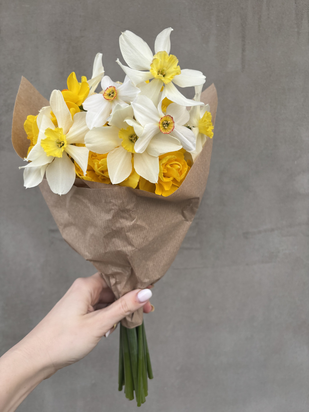 A fotón látható csokor minta, a csokorban 15 szál nárcisz van, színük és formájuk vegyes.