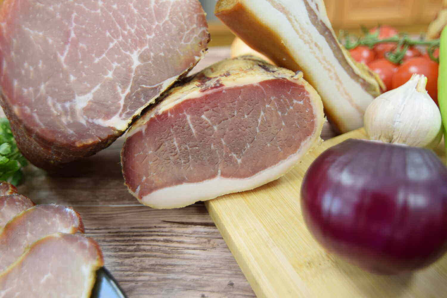 A karajt a saját tenyésztésű és hízlalású, nagysúlyú sertésállományunkból nyerjük. Sertéseink szabadtartásban nőnek fel, nem ólban, istállóban. Nem gyorsítjuk a növekedésüket, a hízást. Féreghajtón kívül nem kapnak más gyógyszert. Természetes, hogy a legjobb minőségű, legújabb kutatásokon alapuló és fenntartható gazdálkodás útján, saját magunk által termelt takarmányokon neveljük hízósertéseinket. Két hétig szárazpácban érleljük, ezt követően pedig két hétig nedves Szigetközi Vándor pácban pihentetjük a karajokat. Két hétig bükkfán füstölve tartósítjuk. Ár: 7690 Ft/kg
