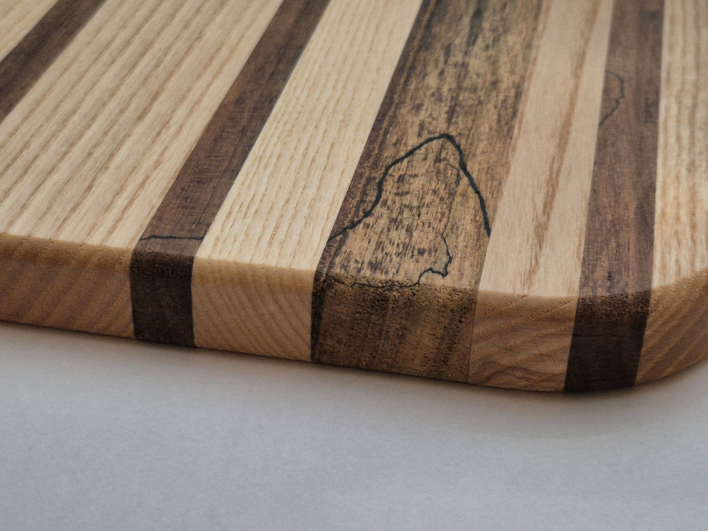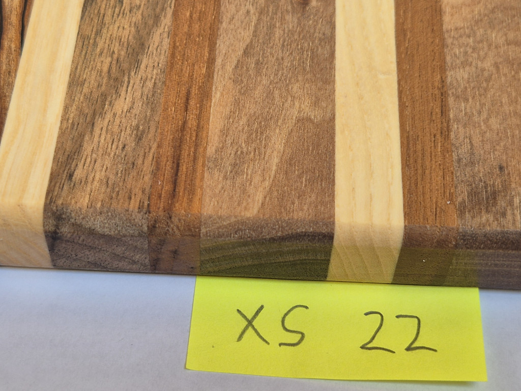 "XS" méretű vágódeszka étkezéshez 19 x 14 Dió és kőrisfa, növényi olajokkal felületkezelve (Élelmiszeriparin minősítés)