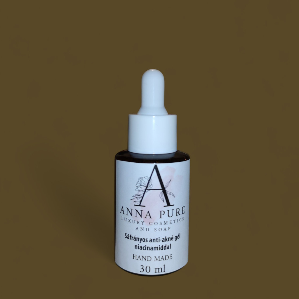 Sáfrányos Anti-Akné Gél Niacinamiddal Kiváló ránctalanító, de önállóan megállja a helyét gyulladáscsökkentőként is egy pattanásos bőrön! Fedezd fel bőröd új barátját a "Sáfrányos Anti-akné Gélben" , amelyet a bőrproblémák hatékony kezelésére terveztek! Ez a kézzel készült gél a legjobb természetes összetevők tökéletes kombinációjával lett megtervezve, hogy segítsen elérni a tiszta, ragyogó és egészséges bőrt. Halványító hatású gél érett vagy problémás bőrre. Főbb Összetevők és Előnyök: Niacinamid: A bőrhibák és aknék szempontjából egyik legkeresettebb összetevő, amely csökkenti a gyulladást és csillapítja a bőrirritációt, miközben javítja az arcszínt. Sáfrány (Crocus sativus) Szirom: Az értékes sáfrány kivonat gazdag antioxidánsokban, amelyek segítenek megvédeni a bőrt a szabad gyökök káros hatásai tól. A sáfrány hazai gazdaságból származik. Rosa Damascena Flower Water: Friss és hidratáló hatású, segíti a bőr természetes egyensúlyának fenntartását. Panthenol és Allantoin: Ismert gyulladáscsökkentő és bőrnyugtató tulajdonságaikkal segítik a bőr regenerálódását és megnyugtatását. Használati Utasítás A Sáfrányos Anti-akne Gél használata egyszerű és hatékony. Használd reggel és este az arc letisztítása után. Vigyél fel egy kis mennyiséget ( egy-kétcsepp! a pipettából) az ujjbegyeid segítségével a tiszta bőrre és finoman oszlasd el a bőrön egyenletesen, majd hagyd, hogy a bőröd magától beszívja! Érezd, ahogy a gél azonnal beszívódik, és a bőröd megújulásra kész! Nem kell lemosni!  Élvezd a Tiszta Bőrt! A Sáfrányos Anti-akne Gél a legjobb választás mindazok számára, akik természetes, hatékony megoldást keresnek a bőrproblémákra. Hozd ki a legtöbbet a bőrápolási rutinodból, és tapasztald meg, hogyan válik az arcbőröd tiszta és ragyogóvá a természet csodáinak segítségével!  Zseniális ránctalanítóként is működik a sáfrány, a rózsavíz és a niacinamid kombinációjánka köszönhetően.  Összetevők: Rosa Damascena Flower Water, Glycerin, Niacinamid, Panthenol, Linoleic Acid, Linolenic Acid, Xanthan gum, Allantoin, Benzyl alcohol, Dehydroacetic acid, Crocus sativus szirom