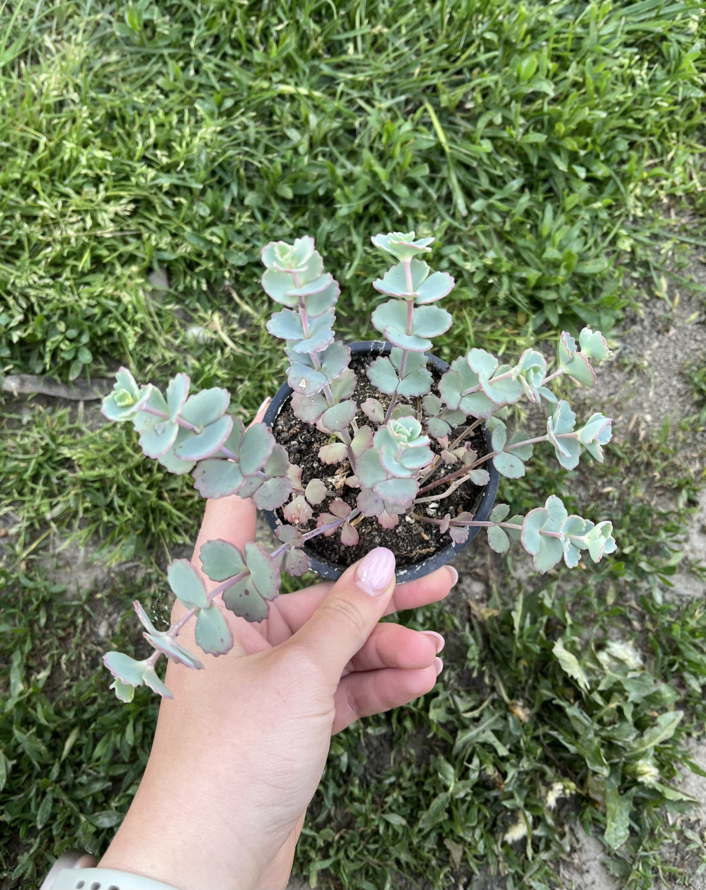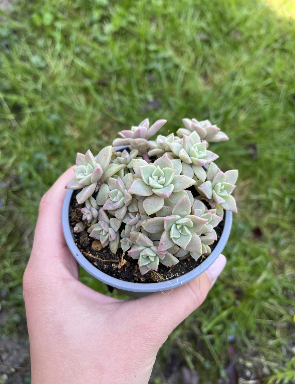9 cm átmérőjű cserépben. Fény Sok fényt igényel, akár közvetlen napot is. Minél több fényt kap, annál intenzívebb lesz a sötét színe. Öntözés Mérsékelten öntözd. Hagyd, hogy a földje két locsolás között kiszáradjon. Télen (nyugalmi időszakban) nagyon kevés víz is elég. Hőmérséklet Az enyhe, 10–25 °C közötti hőmérséklet ideális. Fagyérzékeny, ezért télen ne hagyd kint. Talaj Jó vízelvezetésű, kaktusz- vagy pozsgás föld a legjobb. Gondozás Ha megnyúlik vagy felkopaszodik, vissza lehet vágni – új hajtásokat hoz. Extra tipp Nyáron néha “pihen” (levelei kissé összezáródnak) – ez normális, nem betegség.