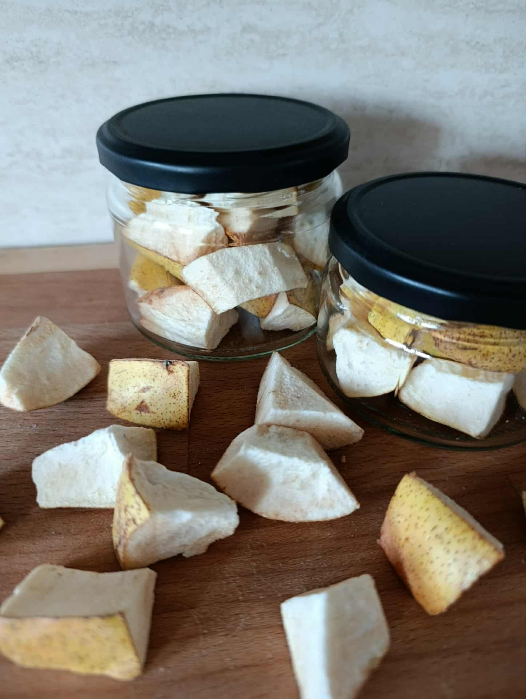 A termék három féle kiszerelésben kapható: 20 g visszaváltható üvegben 30 g visszaváltható üvegben Friss házi körte liofilizálással (fagyasztva szárítás) tartósítva. Az eljárás során a gyümölcsök megőrzik természetes ízüket, színüket, formájukat és a bennük levő tápanyagokat. Hozzáadott cukrot, tartósítószert és más adalékanyagokat nem tartalmaz! Kiváló nassolnivaló kicsiknek és nagyoknak egyaránt; de müzlik, joghurtok, smoothiek és desszertek hozzávalójaként is ideális választás. Összetevők: 100% körte Természetes ízek bárhol, bármikor!